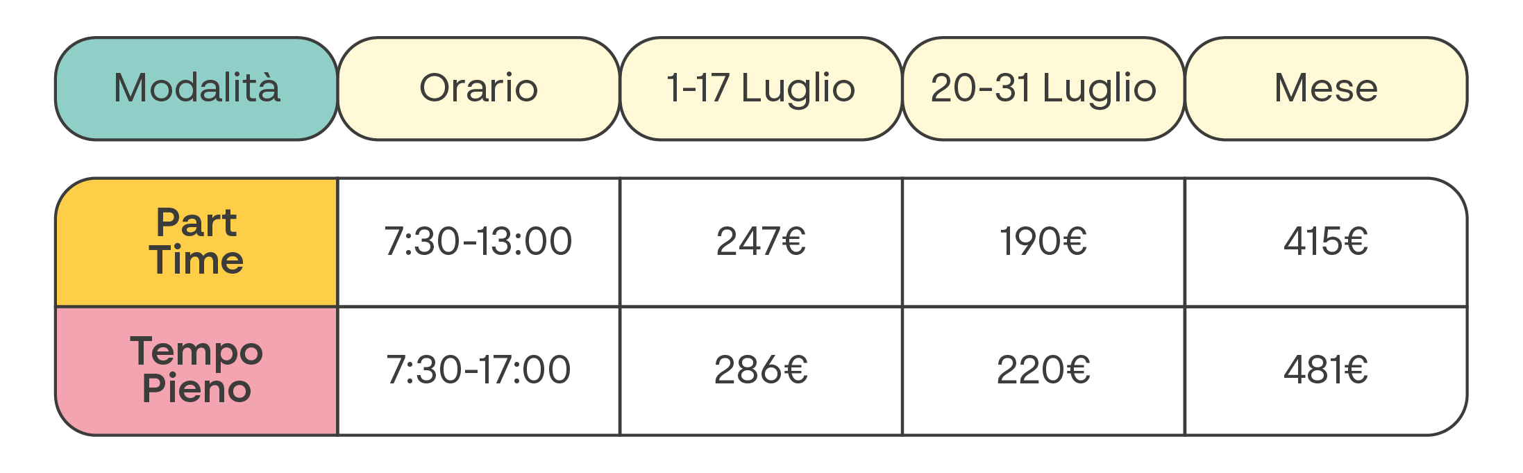 Attenzione! Ci sono sconti riservati ai fratelli che si iscrivono allo stesso centro estivo.